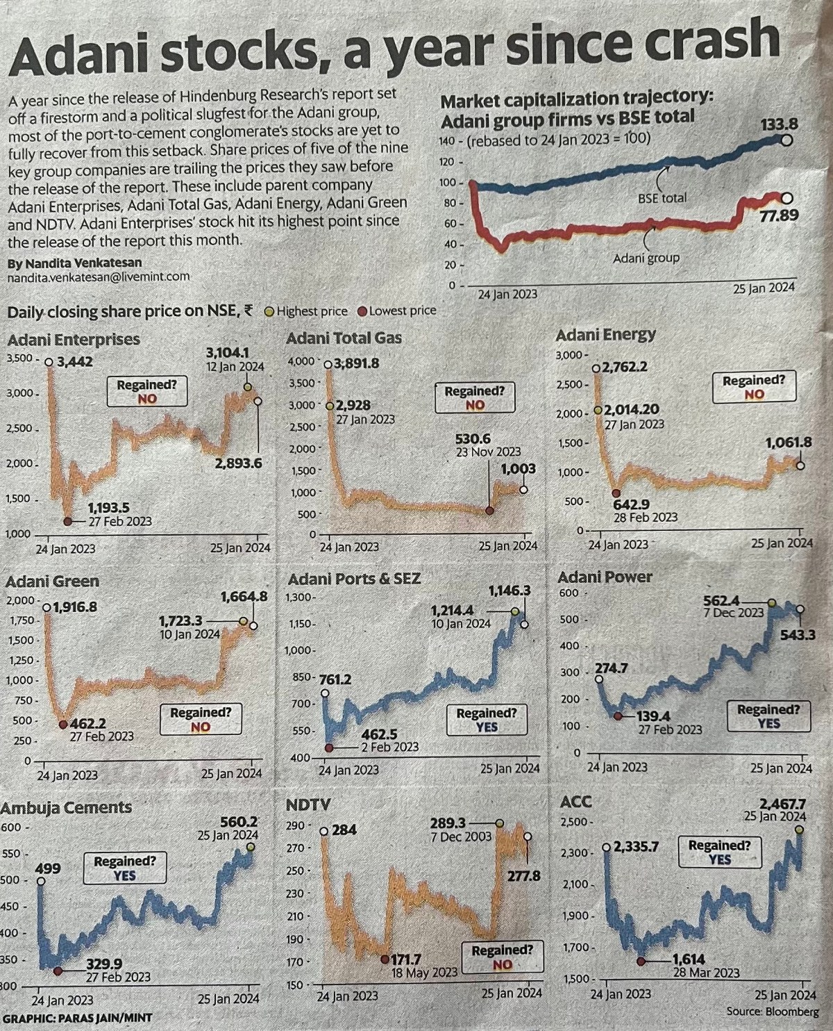 About a year ago, do you recall a significant jolt in the trajectory of Adani stocks? Remember the nerve-wracking plummet? It was a freefall to say the least!