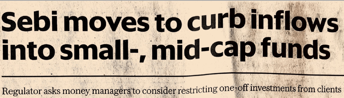 SEBI, the market regulator in India, has turned their attention to Mutual Fund Money Managers, with recommendations to limit one-off investments from clients in small and mid-cap stock mutual funds and even to trim the commissions offered on their sale.