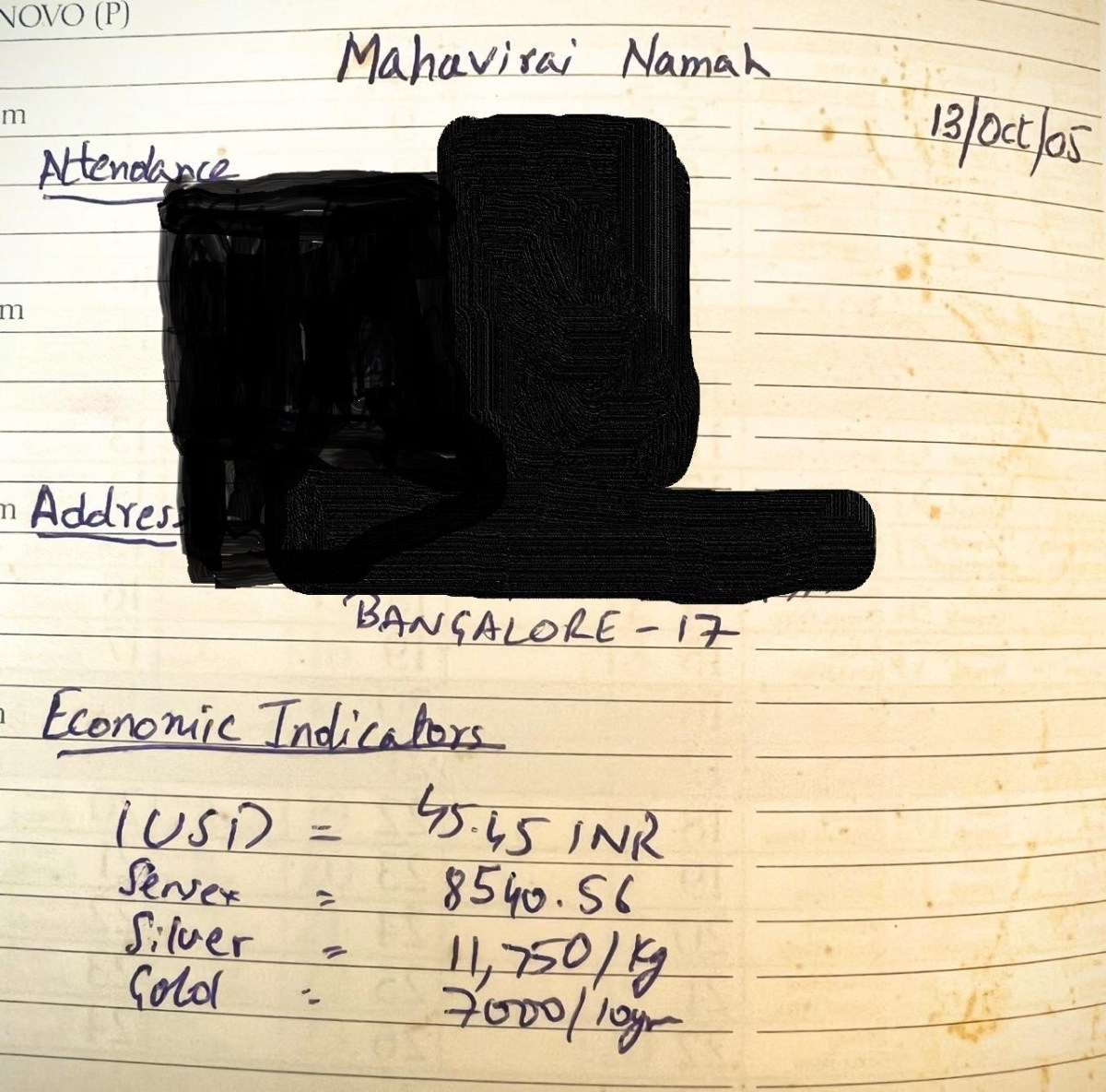 As part of a ritual every Dusshera – after the prayers, in this diary we mark the presence of all the family members who were present at the event, and also record some key financial indicators. At the end of the event– we invariably end of spending some time reviewing the diary entries from earlier years.